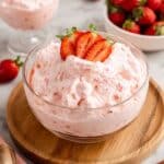 Keywords: Strawberry Fluff dessert, no-bake strawberry dessert, jello pudding salad, fruit fluff recipe, easy party dessert