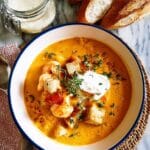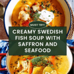 This Swedish Fish Soup with Saffron is a creamy, aromatic seafood stew featuring tender cod, salmon, prawns, and mussels in a delicate broth infused with saffron, white wine, and fresh herbs. Perfect for seafood lovers looking for a comforting and flavorful dish that combines Scandinavian traditions with rich, creamy textures.