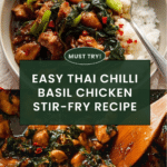 Thai Chilli Basil Chicken is a vibrant and flavorful stir-fry that combines tender chicken thigh pieces with aromatic Thai basil, fiery bird’s eye chili, and a savory-sweet sauce. This quick and easy dish is perfect for a weeknight meal and is traditionally served with steamed jasmine rice to soak up the delicious sauce.