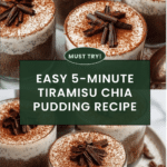 This Tiramisu Chia Pudding is a quick and easy 5-minute no-chill dessert inspired by classic tiramisu flavors. Combining chia seeds soaked in hot water with espresso powder, cocoa, and plant-based milk, it creates a creamy, layered pudding topped with vegan yogurt and a dusting of cocoa. Perfect for a healthy vegan treat packed with fiber and protein, ready to enjoy immediately or chilled for later.