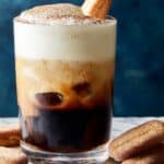 3. Add Whipped Cream and Garnish: Using a spoon, carefully divide the whipped cream between the two glasses, smoothing the cream into an even layer that covers the surface of each drink. Lightly dust the top of the cream with unsweetened cocoa powder. Finish by placing a halved ladyfinger cookie on the rim or atop each glass as a garnish.