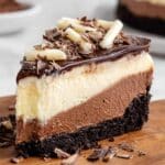 Keywords: triple chocolate cheesecake, chocolate cheesecake, layered cheesecake, no crack cheesecake, baked cheesecake, chocolate dessert