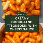 Tteok ‘n’ Cheese is a comforting Korean-inspired dish featuring soft rice cakes drenched in a rich, creamy cheese sauce spiced with savory gochujang. This quick and easy recipe combines chewy tteok with melted cheddar and a hint of heat to create a delightful fusion snack or side dish perfect for cheese lovers and Korean cuisine fans alike.