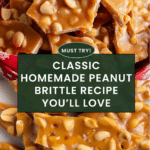This classic Vintage Peanut Brittle recipe features a perfectly crunchy, sweet candy studded with salted dry roasted peanuts. Cooking the sugar syrup to the hard crack stage ensures a satisfying brittle texture that’s both flavorful and nostalgic. Made with simple ingredients like granulated sugar, corn syrup, butter, and vanilla, this timeless treat is ideal for gifting or enjoying as a homemade confection.