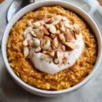 Keywords: pumpkin oatmeal, spiced pumpkin oats, autumn breakfast, creamy oatmeal, maple syrup oatmeal, healthy breakfast, vegetarian oatmeal