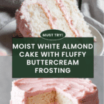 Keywords: white almond cake, whipped buttercream frosting, almond cake recipe, white cake with almond flavor, homemade buttercream, elegant dessert