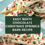Keywords: white chocolate bark, Christmas bark, holiday treat, festive dessert, sprinkle bark, easy holiday recipe